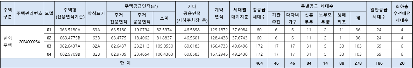 일반공급 186세대, 특별공급 278세대가 예정되어있습니다.