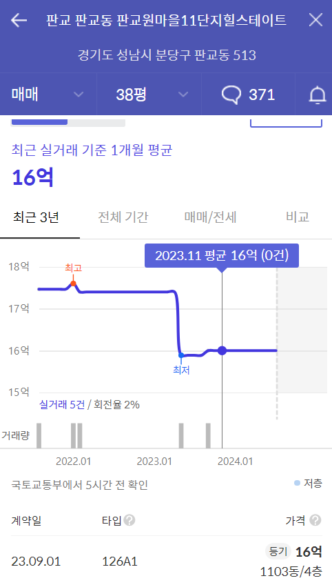 대략 14 ~ 16억으로 거래되는 것으로 보이며,